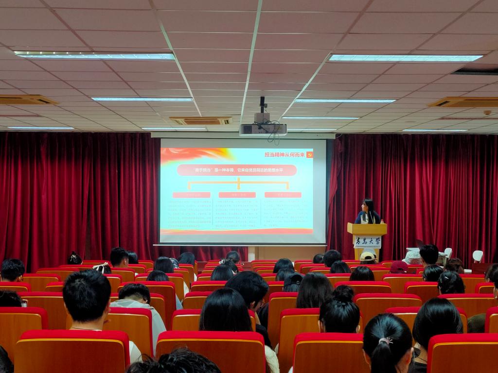 10月25日晚,伟德国际victor1946员工党支部于金家岭校区图文中心三楼报告厅举办“肩负重任,挺膺担当,争做时代好青年”主题宣讲。“雁政行”宣讲团成员荣靓赛担任主讲,公司全体2023年秋季学期党员发展对象、入党积极分子和主要团学骨干参加本次宣讲活动。