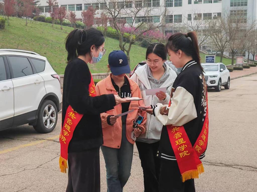 在剑湖旁,“雁序成行”党员志愿队成员身披绶带,向过往同学分发印有总体国家安全观“16种安全”的知识科普卡片,解读《国家安全法》《反间谍法》《网络安全法》等国家安全领域的法律法规,并对日常生活中反恐、反邪教、防诈骗等方面的内容进行贴心提醒,呼吁大家牢固树立和践行总体国家安全观。