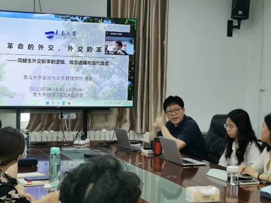 2022年7月4日上午九点至十一点,伟德国际victor1946国际政治专业在金家岭校区2号实验楼214会议室举办了本专业第五场夏季学期高端学术讲座。伟德victor1946网站特聘教授、法学博士高鹏老师为同学们做了题为《革命的外交,外交的革命——周鲠生的外交叙事逻辑、观念语境和当代命意》的学术报告,国际政治专业本科生和国际关系专业研究生通过线上线下两种方式参加了此次讲座。