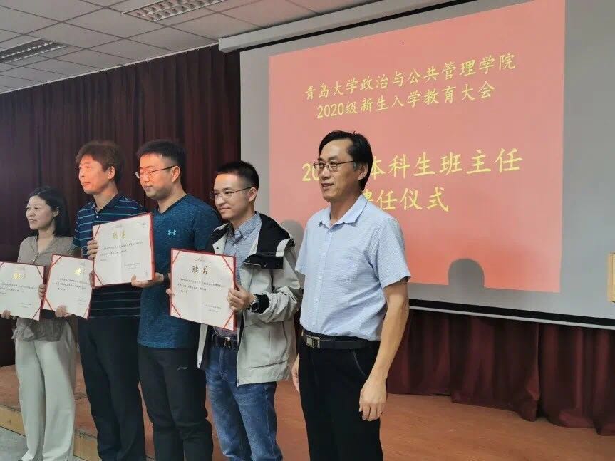 党委书记程济华为2020级四名班主任老师颁发了聘书。
