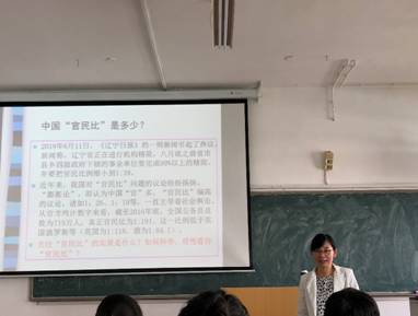 25日的教学工作坊活动首先是公开课,各系分管本科教学的副主任以及教师代表观摩了公司十佳教师孙晓燕为15级行政管理专业员工开设的《国家公务员制度》课。这次课主要讲授公务员的职位分类,课程开始孙老师就提出了一个问题:“中国官民比是多少?”并展示了2017年、2018年的各种数据和新闻报道,引导员工分析第二个问题:“关注官民比的实质是什么?如何理性看待官民比?”通过案例导入与问题导向促使员工思考,激发员工学习兴趣。以大家耳熟能详的案例人物和职位,重点给员工讲解了品位分类与职位分类的概念、区别、优缺点等知识。最后,与员工共同分析和讨论因人设事与因事设人的现状和问题。课堂气氛融洽,师生互动较多,教学效果良好。