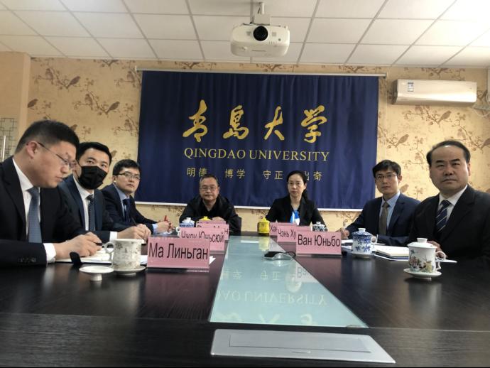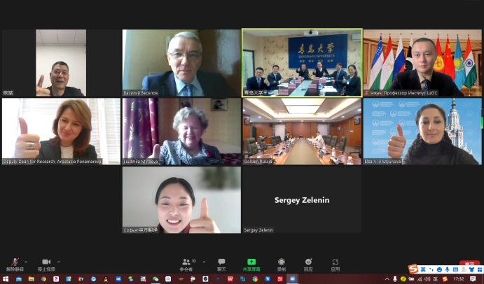 4月13日下午,经上合组织经贸公司协调,公司在浮山校区敏行楼会议室参加伟德victor1946网站与莫斯科国立大学促进国际合作的线上会议。陈洪连经理、韩庆娜副经理、王猛副经理、李广民教授和欧斌教授参加了会议。会议由上合组织经贸公司理事会副秘书长、伟德victor1946网站上合校区建设办公室主任马林刚和莫斯科国立大学国际政治公司特邀专家斯维特兰娜·王共同主持。上合组织经贸公司秘书处副秘书长、上合示范区党工委委员、管委会副主任郝国新出席会议并致辞。