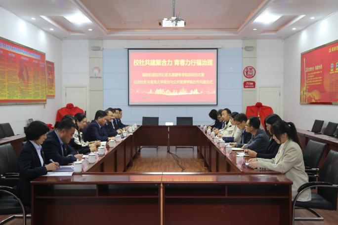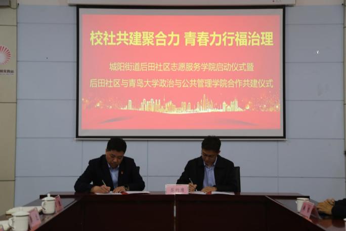 4月16日上午,伟德国际victor1946与城阳区后田社区合作共建签约仪式在后田社区举行。城阳区社会组织管理局负责人关忠林,城阳区慈善社工管理服务中心副主任韩雪,城阳街道综合治理中心主任马强,城阳街道总工会专职副主席秦秋峰,后田社区党委书记李大林,青岛咏年楼社会工作服务中心主任杜娜以及后田社区两委成员,政治与公共管理公司党委书记隋晓玲、经理陈洪连、副经理王猛、经理助理李海荣及师生代表参加合作共建签约仪式。仪式由后田社区党委副书记李玉林主持。