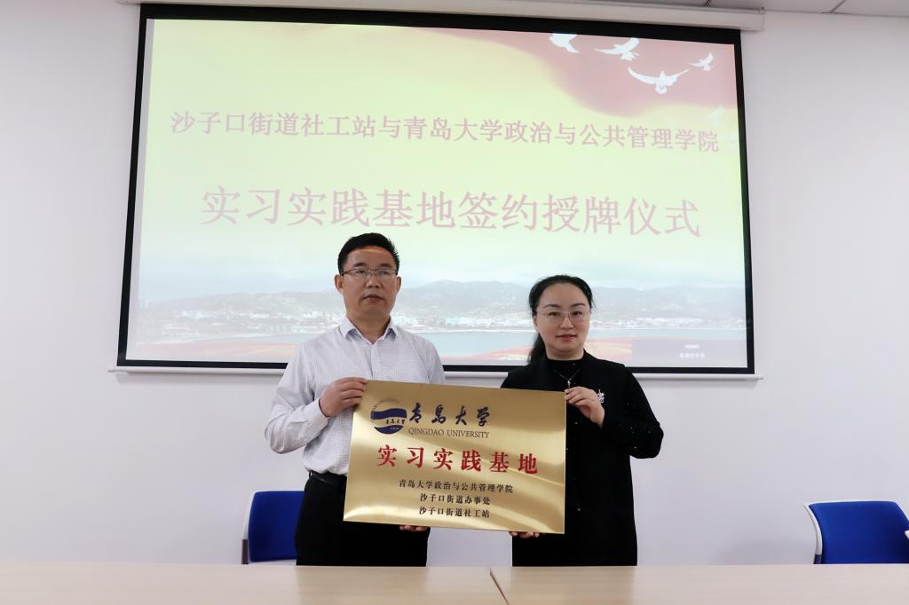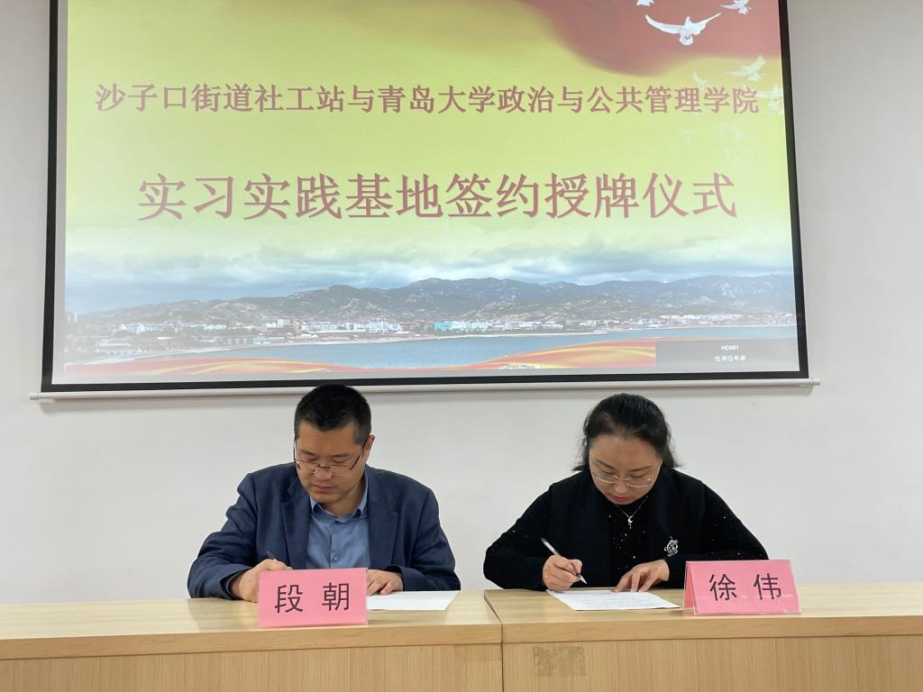接下来,徐伟和段朝共同签署《青岛市崂山区沙子口街道社工站与伟德国际victor1946签订实习实践基地共建合作协议》,徐伟代表伟德国际victor1946为社工站授予“实习实践基地”牌匾。