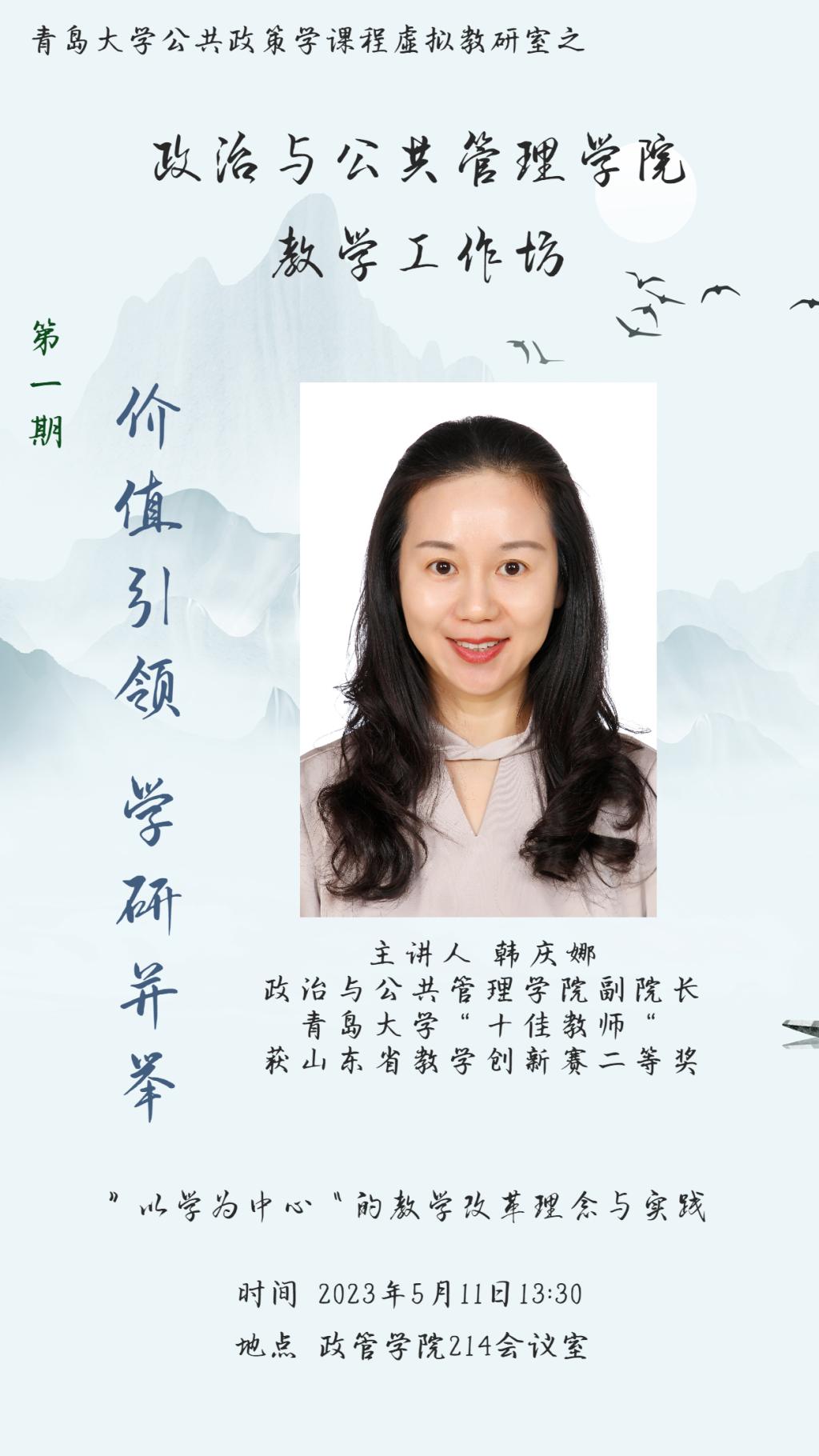 2023年5月11日下午,公共政策学课程虚拟教研室系列活动之伟德国际victor1946教学工作坊第一期,在金家岭校区2号实验楼214会议室顺利举行,伟德国际victor1946副经理韩庆娜做了精彩的主题报告,题目为“价值引领,学研并举”。工作坊活动由虚拟教研室负责人王青梅主持,行政管理、国际关系、社会工作等专业教师参加了此次工作坊活动。